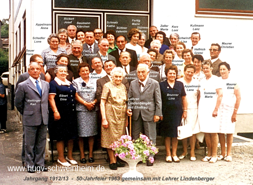 JG 1912/13 50-Jahrfeier 1963 mit Lehrer Lindenberger